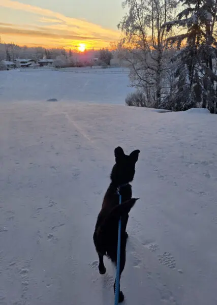 Looking for someone to watch the sunset with? Look no further, Duke is the perfect companion! He’s happy to go for a walk or hike and would love to cozy up and get warm on the couch or by the fireplace after! Duke loves everyone he meets and his enthusiasm for life (and walks) is unmatched. Duke is blessed with the best of both worlds: the Lab’s goofy, affectionate heart and the Husky’s playful, adventurous spirit. Although over a year old, he’s still got that puppy sparkle—curious about everything, quick to learn, and always ready for fun. He is social with other dogs but has had no cat experience that we are aware of. Portrait by David Jensen Photography.