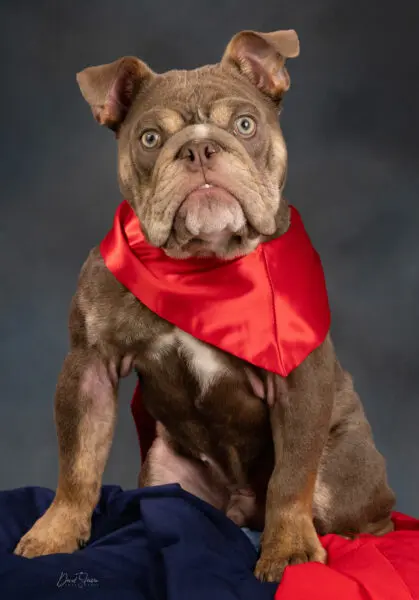 At a very tender age, Nugget has already mastered the art of devotion. With his compact, wiggly body and expressive face, he’s the kind of pup who makes every room brighter simply by trotting into it. He’s playful, curious, and full of that classic puppy charm—but what truly defines him is his love for being with his person. Whether you’re moving around the house, settling in for a quiet evening, or heading out for an adventure, he’s happiest right by your side, matching your pace with a happy little trot. He enjoys toys, treats, and exploring the world, but nothing compares to companionship. He’s the ultimate Velcro pup: loyal, affectionate, and always ready to curl up against you after a day of fun. Portrait by David Jensen Photography.