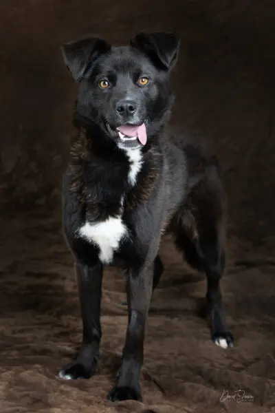 Suka is a joyful girl with a heart as soft as her beautiful fur. She’s the perfect medium-sized companion — big enough for outdoor fun, small enough for couch cuddles. She is social with other dogs, but her skills with cats are unknown. Portraits by David Jensen Photography.